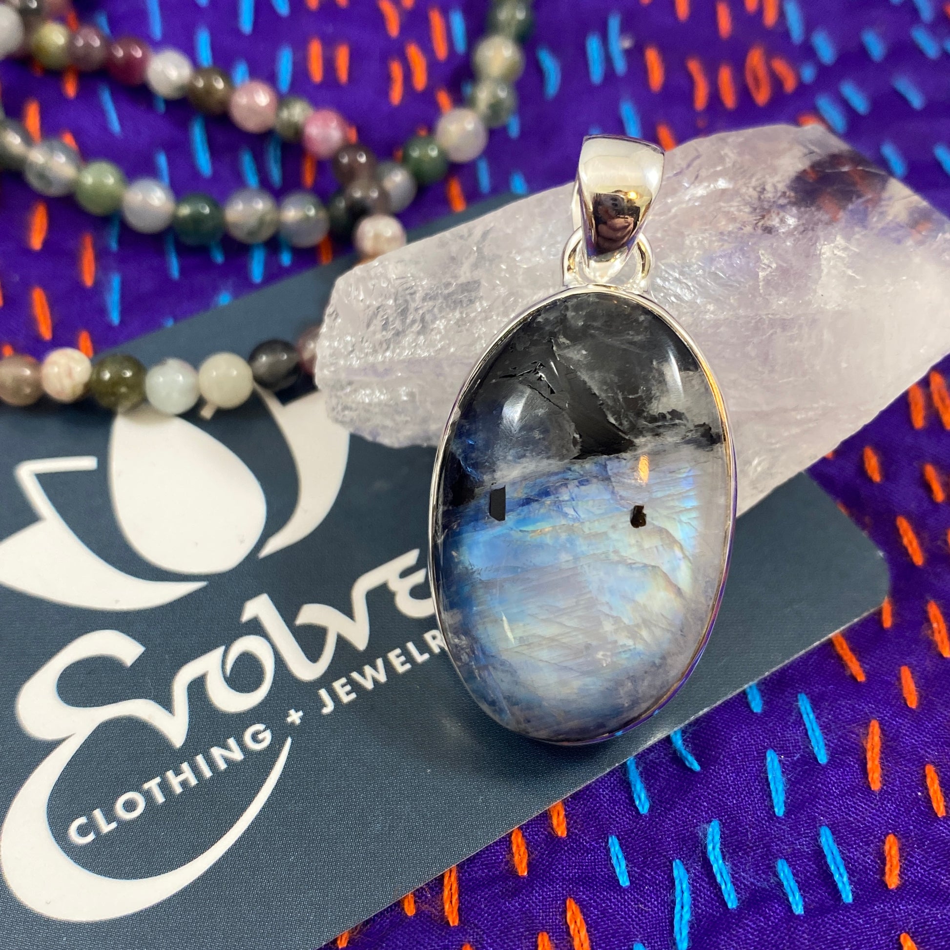 These rainbow moonstones are set in sterling silver and are personally curated and designed for Evolve.